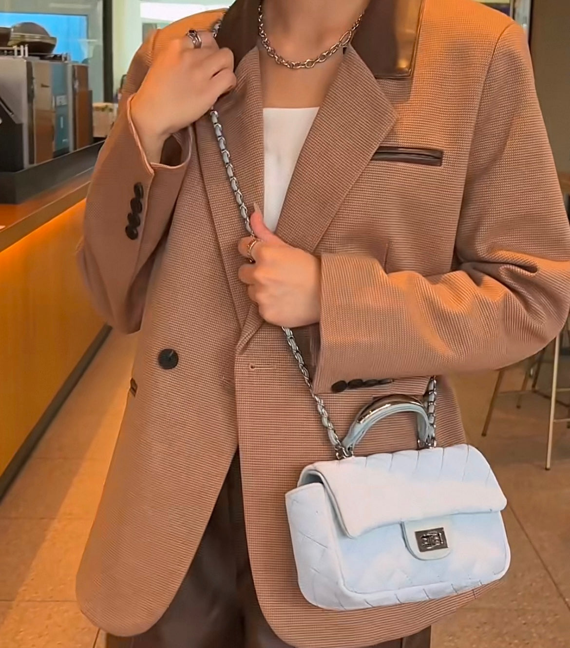 Gesteppte Handtasche aus Kunstwildleder mit Rautenmuster für Frauen