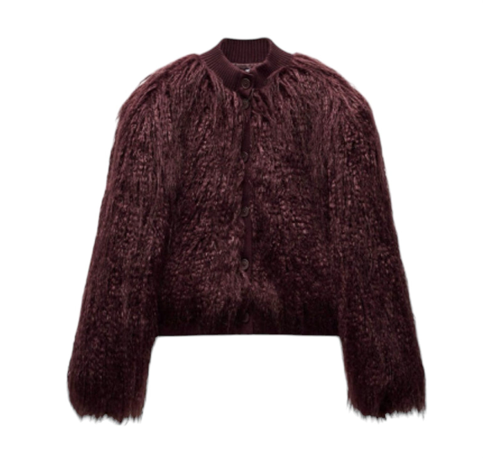 Strickjacke mit Wein-Roter Fell Optik für Damen