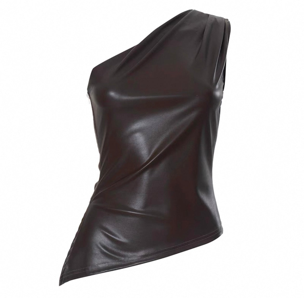 Drapiertes Kunstleder Oberteil in Dunkelbraun für Damen